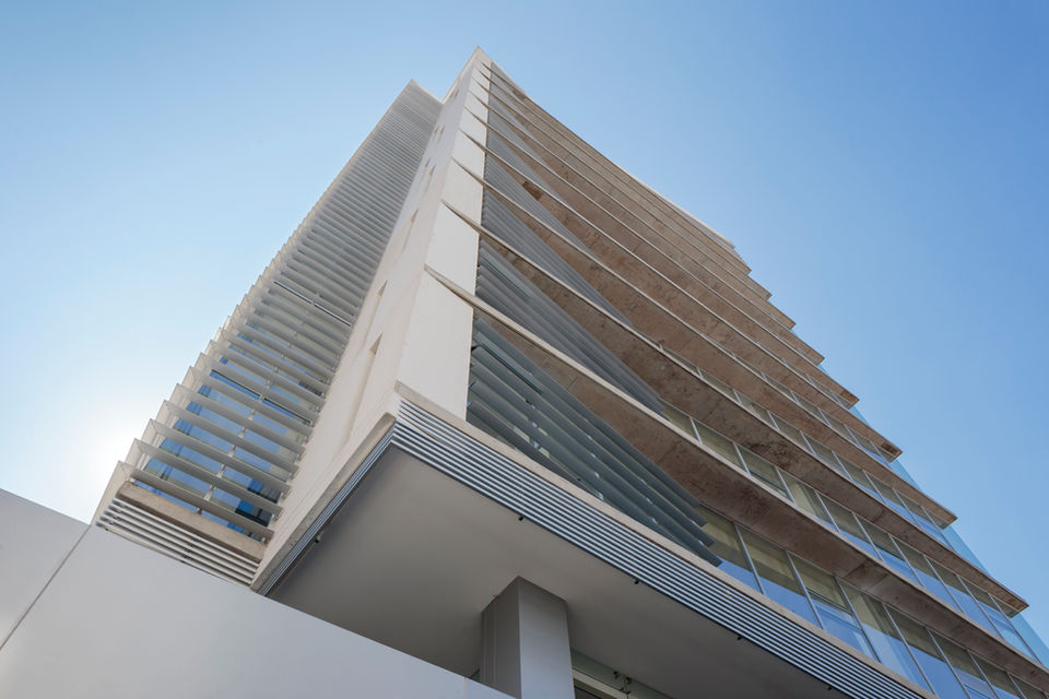 El reto de insertar un edificio de carácter corporativo dentro de una zona consolidada de la ciudad exige identificar rasgos implícitos en el contexto tales como: el espacio público, la escala, la heterogeneidad de los recursos arquitectónicos en los edificios circundantes, el paisaje natural y sus visuales, etc. El edificio Titanium acoge estas condicionantes y las resume en el uso de dos recursos básicos de composición: el pliegue y los pixeles;